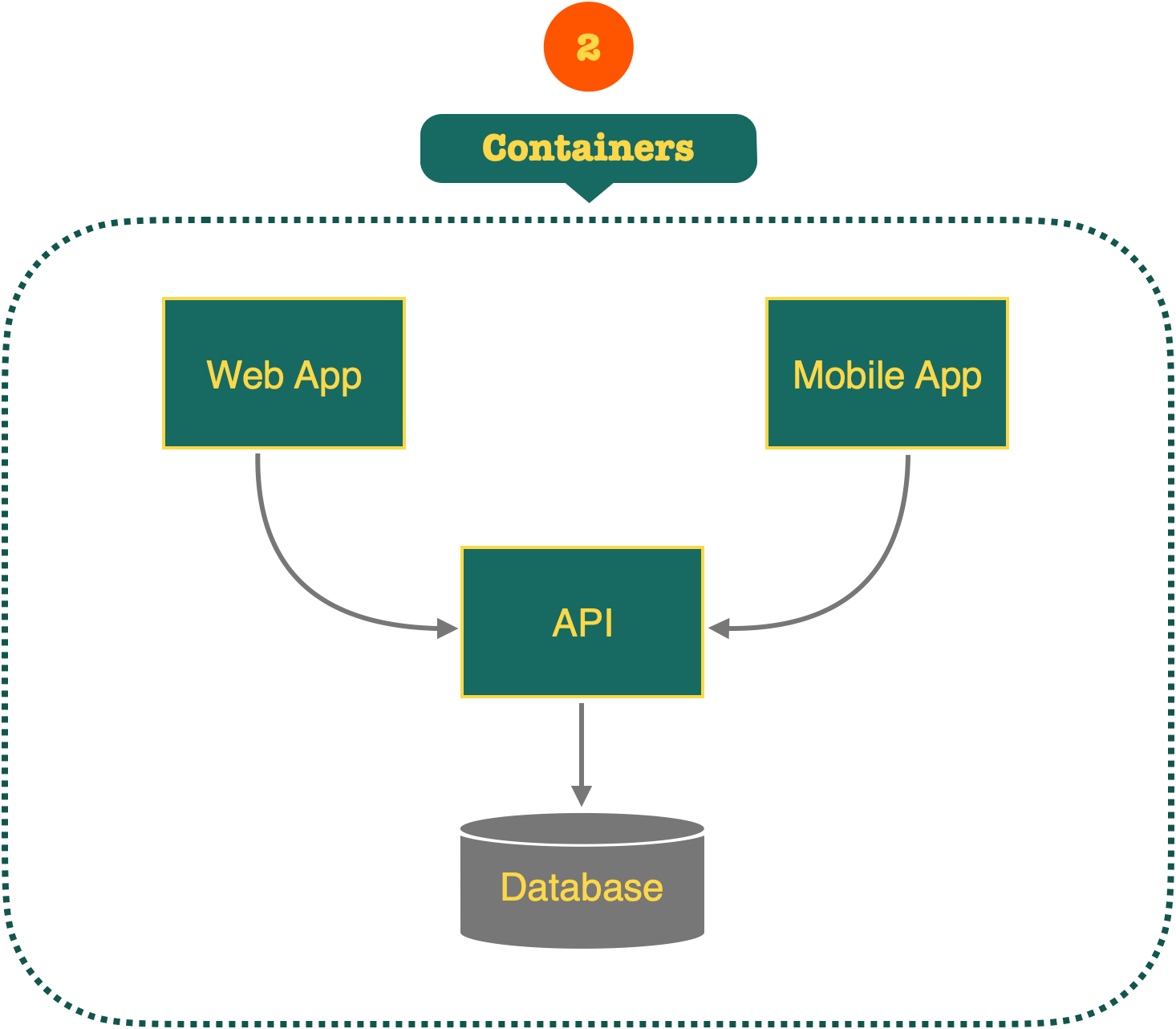 Next, you zoom in to the Container diagram. This shows the high-level structure of your system, the main building blocks like web applications, databases, and mobile apps. It answers questions like, “What are the major components, and how do they interact?”