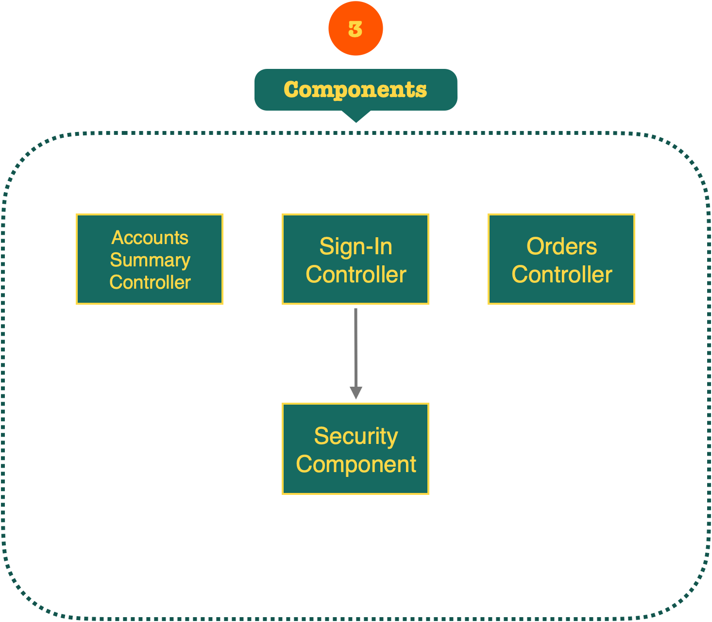 For the API in our eCommerce system, you might have components for authentication, accounts summaries and processing orders.